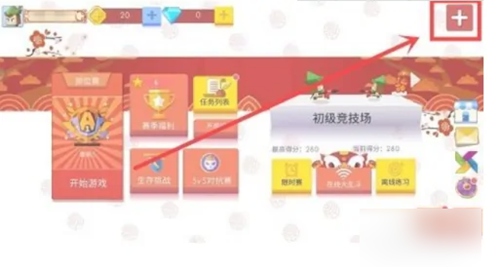 2.进入到游戏首界面中之后,在该页面的右上角位置我们找到十字形图标,点击打开。