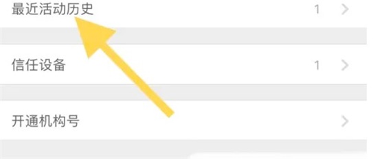 3、进入活动历史页面后,即可查看最近登录账号的设备。