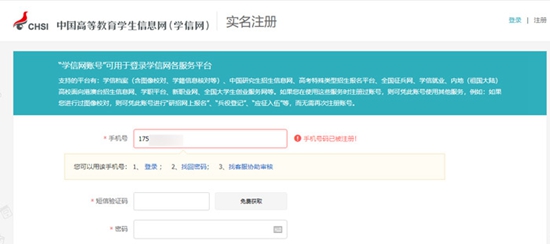 学信网的账户在注册时提示“手机号码已被注册”,那说明我们之前已经使用该手机号注册过账户,可以通过注册界面给出的三种解决方法解决: