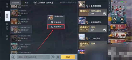4、在玩家点击屏蔽玩家之后,该好友就无法看见你的登录情况了。